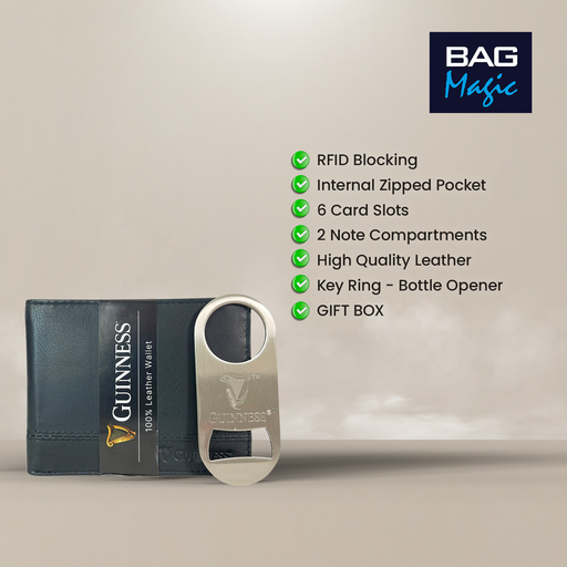 Guinness® Leather Wallet Gift Set RFID Secure + Keyring Bottle Opener Boxed