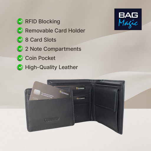 Guinness® Black Leather Wallet with Coin Pocket – RFID Blocking Bifold Wallet