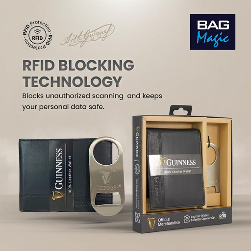 Guinness® Leather Wallet Gift Set RFID Secure + Bottle Opener Official UK