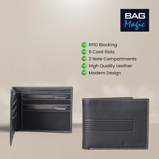 Guinness® Men’s Black Leather Wallet with RFID Blocking – Slim Bifold Card Holder with 6 Card Slots & Note Compartments – Official Merchandise Gift