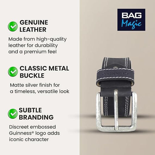 Guinness® Genuine Black Leather Belt for Men, Full Grain Premium Leather