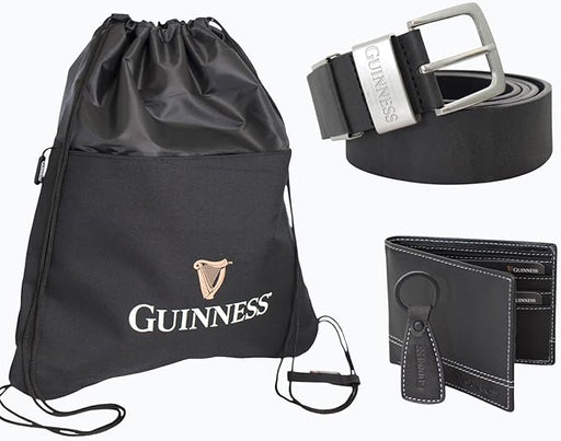 View full detailsGuinness Official Men’s Gift Set – Leather Wallet, Key Fob & Adjustable Belt with Water-Resistant Drawstring Bag | RFID Blocking Genuine Leather | Premium Licensed Guinness Merchandise